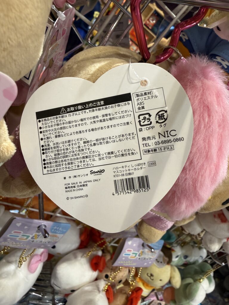 こちらはドンキホーテに売っていた日本企画の日焼けキティで、ヤスダ通商という会社が発売元のものです。クオリティーはABCストアのものと比べて、そんなに悪くありませんでした。こちらも中国製。